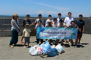 今回は西側の砂浜にてゴミ拾いを行いました。海水浴場含めて砂浜では喫煙が禁止されているにもかかわらず