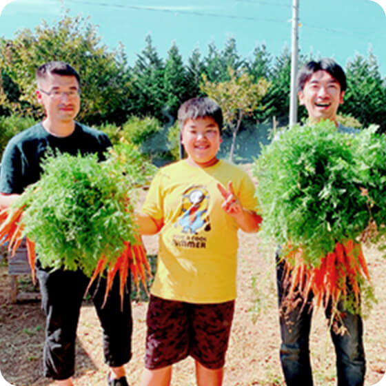 農作物の収穫体験や料理づくりなどを通し、農家の方々と交流をしています。